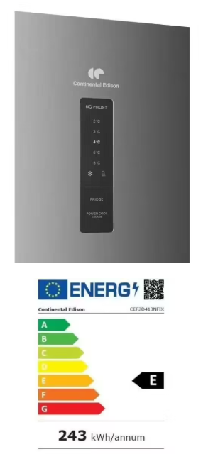 CONTINENTAL EDISON Réfrigérateur Congélateur Haut - 413l - Total No Frost - Inox - L70 X H 178 Cm